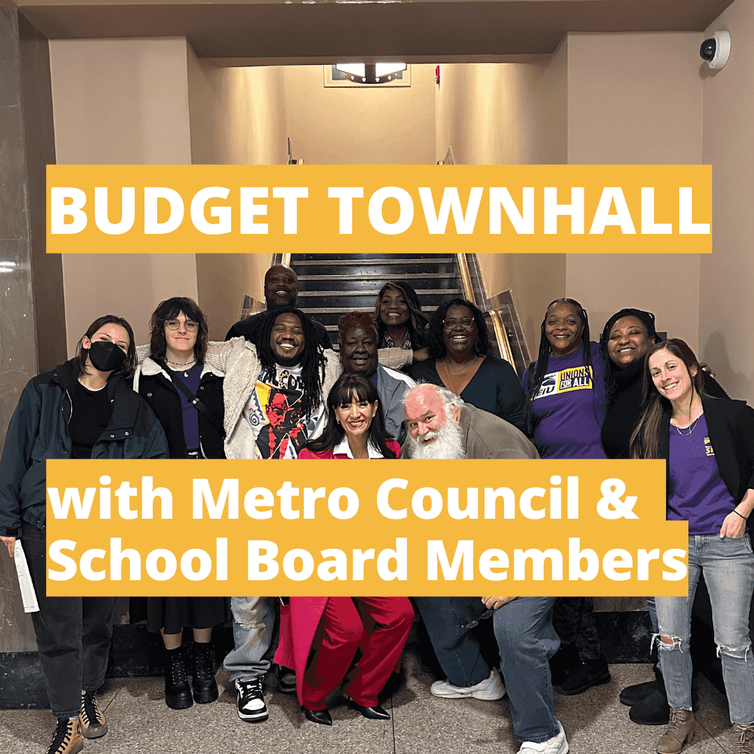 Members from across Metro departments and MNPS will speak about our priorities and needs in the year ahead. Elected officials are invited to hear directly from us about who we are, who we represent, the work we do, and the value we bring to Nashville. The Townhall is open to current SEIU Local 205 members or potential members – so invite your coworkers who are not part of the union yet! This is our opportunity to make our demands known. There will also be a raffle and a COPE Drive.